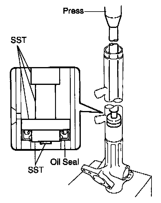 b. Using SST, press in the oil seal.
