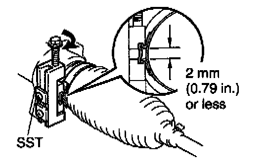 c. Using SST, tighten the clamp as shown in the illustration.