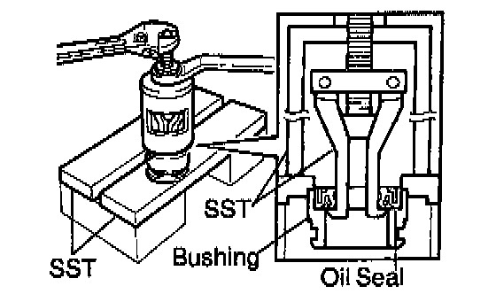 a. Using SST, remove the oil seal from the bushing.