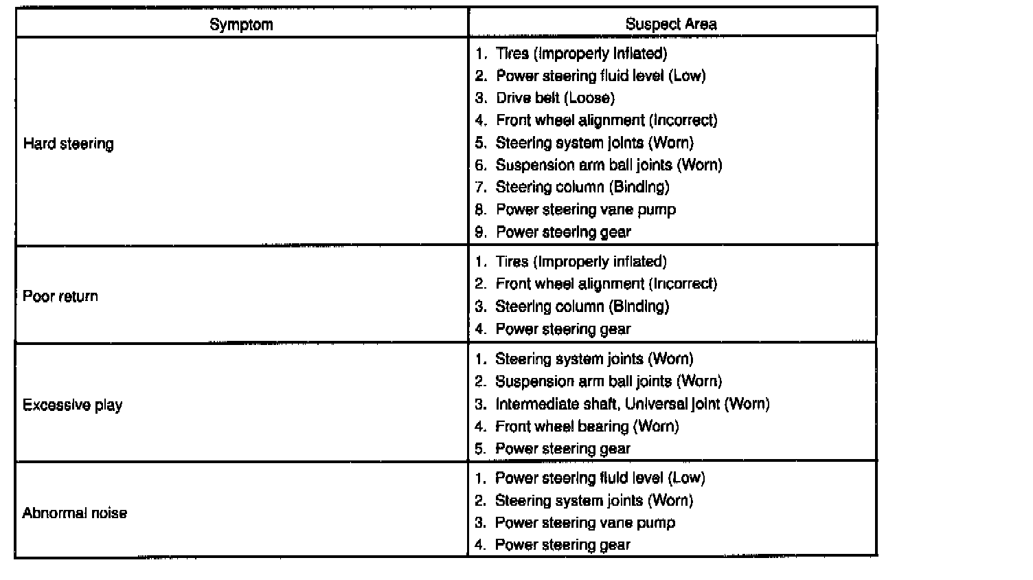 PROBLEM SYMPTOMS TABLEUse the table to help you find the cause of the problem. The numbers indicate the priority of the likely cause of the problem. Check each part in the order shown. If necessary, repair or replace these parts.