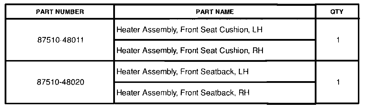 This is to inform you of the seat heater replacement procedure. A change has been made to allow separate installation of the seat heater element.