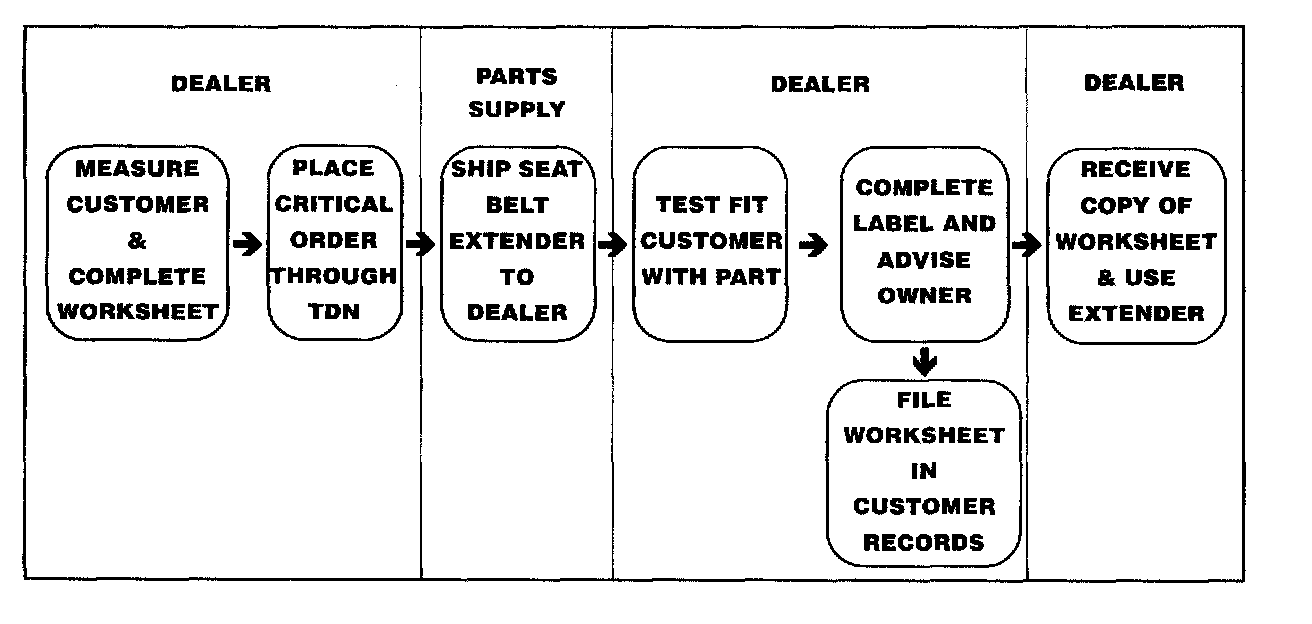 To assure utmost owner satisfaction, it is recommended that a dealership designate one person to coordinate all activities related to the Seat Belt Extender issue.