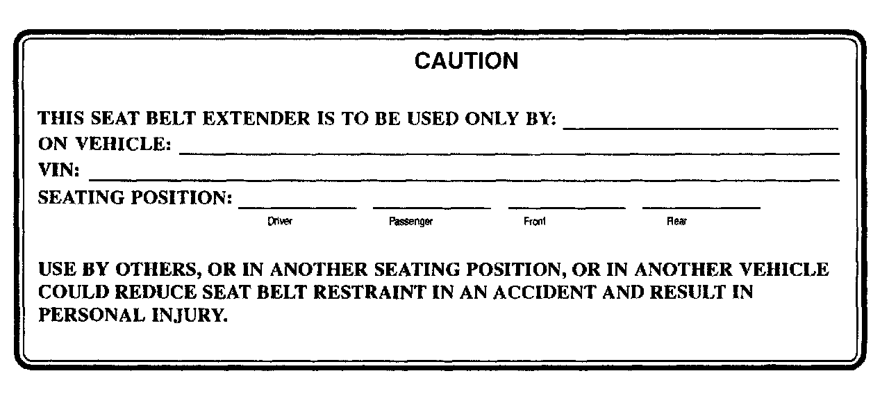 When using the Seat Belt Extender, observe the following. Failure to follow these instructions could result in reduced effectiveness of the seat belt restraint system in case of vehicle accident, increasing the chance of personal injury.