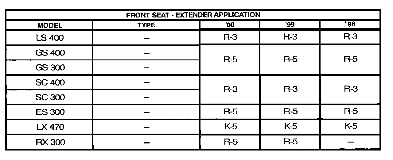 The extender must not be used for the center rear seat belt (except on the 1998 through 2000 model year ES 300).