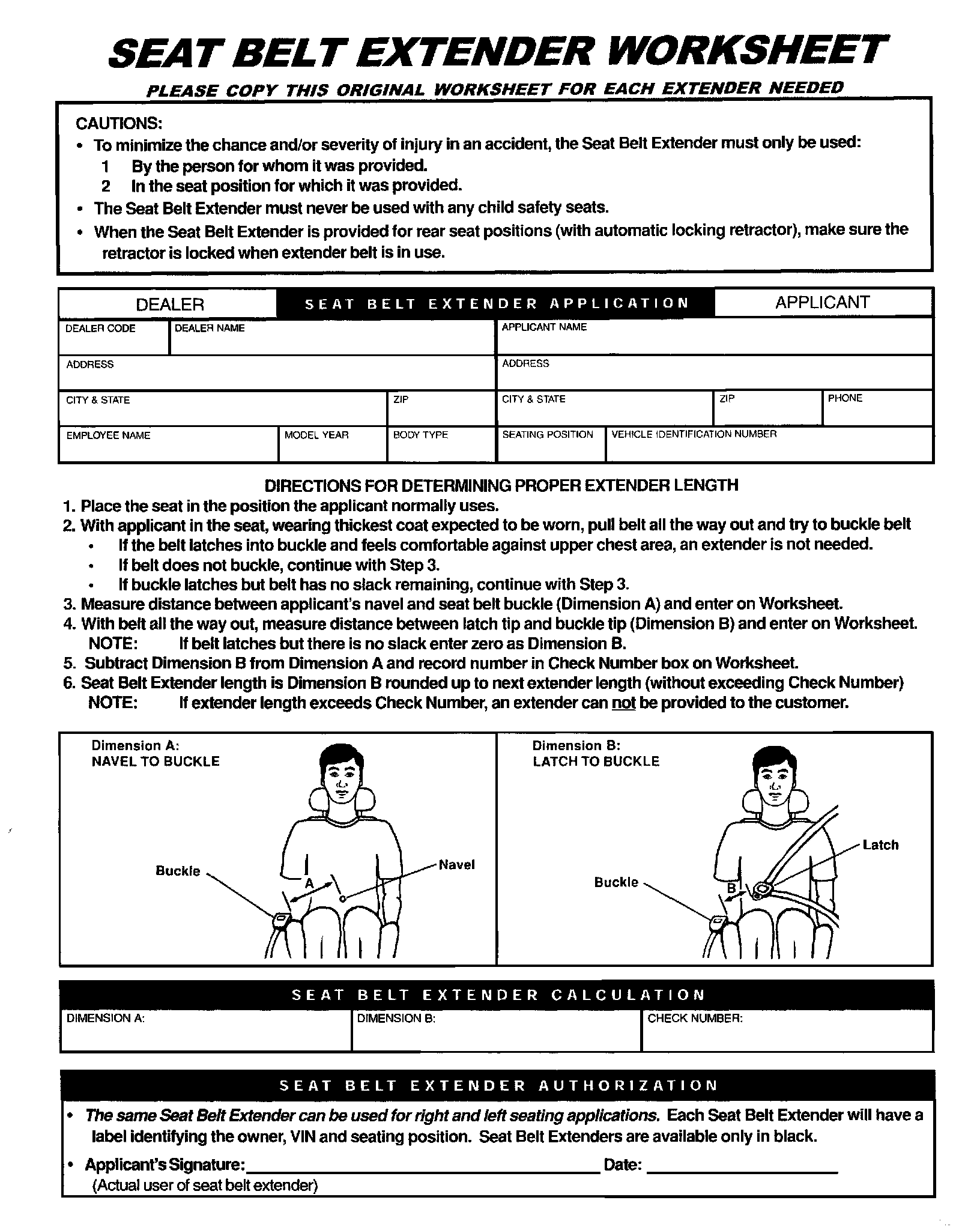 2. Dealer verifies the need for a Seat Belt Extender and obtains a current copy of this TSB and copies the Worksheet.