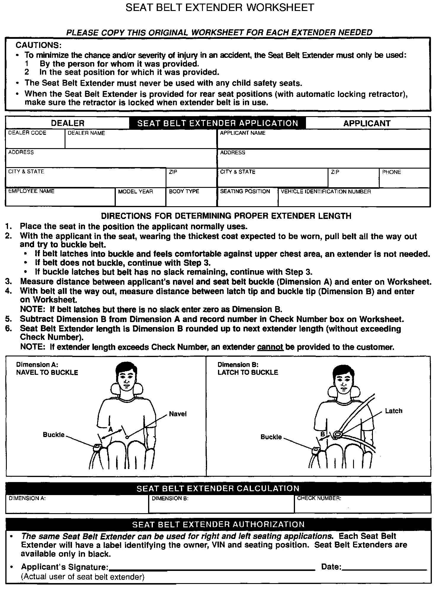 2. Dealer verifies the need for a Seat Belt Extender and obtains a current copy of this TSB and copies the Worksheet shown.