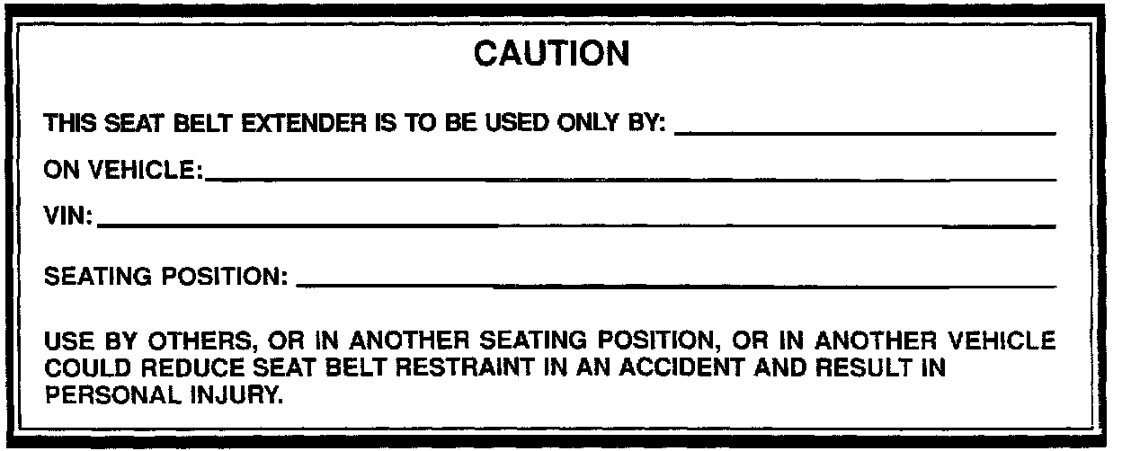 Sample Seat Belt Extender Customer Information Label