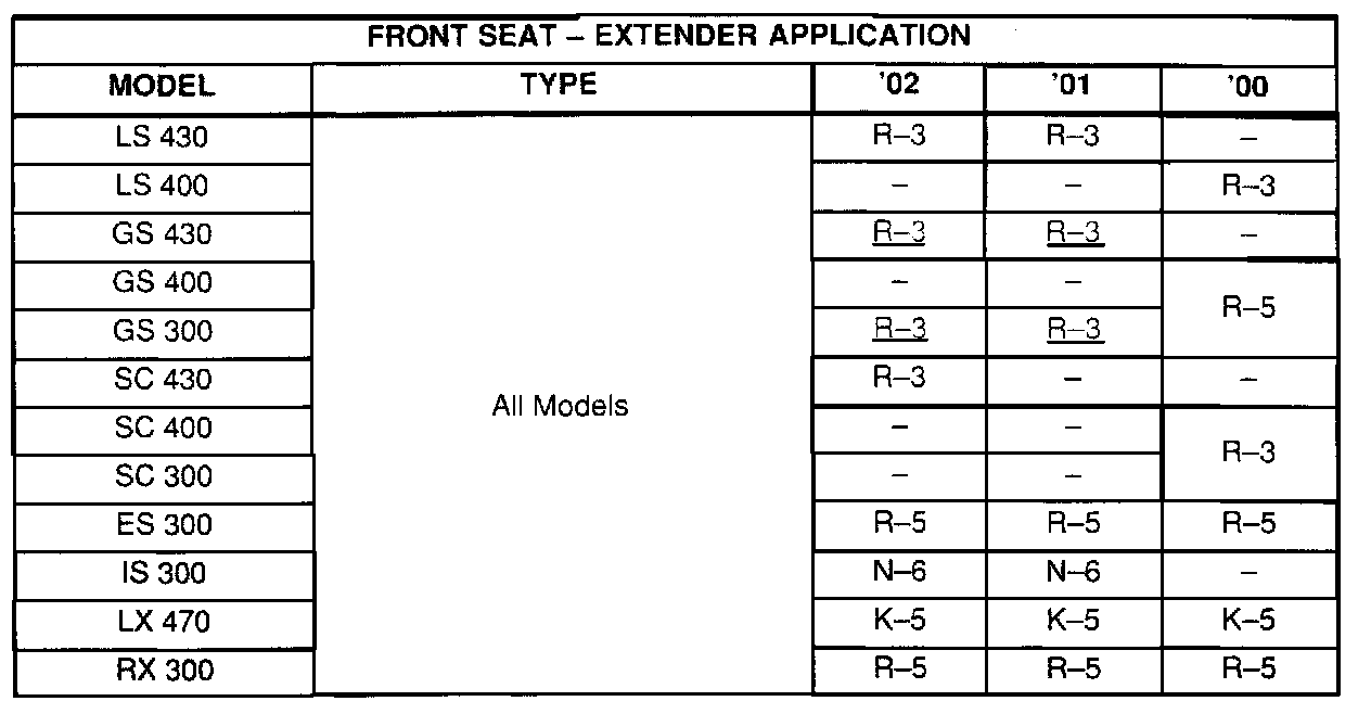 ^ Owners are informed of the Seat Belt Extender availability through the Lexus Owner's Manual included in each vehicle.