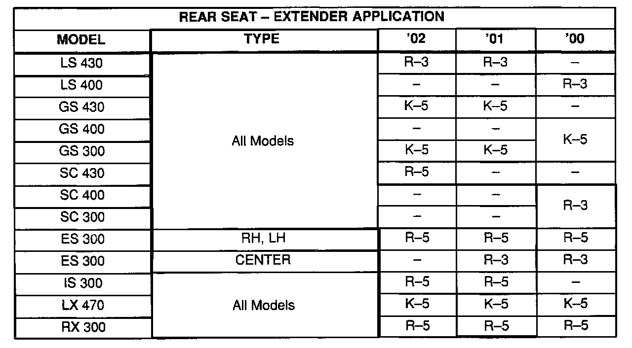 The extender must not be used for the center rear seat belt except on the 2000 and 2001 model year ES 300 models.