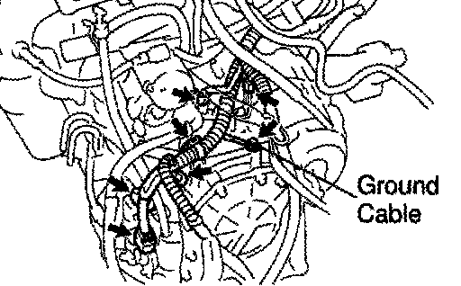 10. REMOVE 5 TRANSAXLE UPPER SIDE MOUNTING BOLTS AND DISCONNECT GROUND CABLE