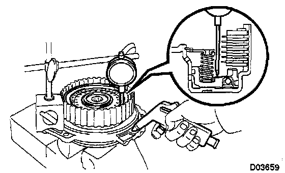 c. Install the snap ring with a snap ring expander. Be sure the end gap of the snap ring is not aligned with the spring retainer claw.
