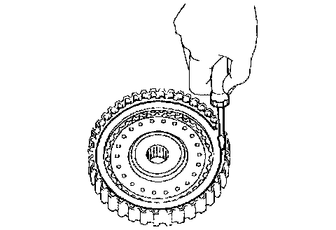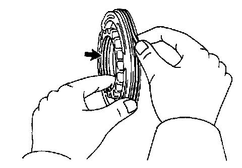 b. Holding the forward clutch piston with your hard, apply compressed air (392 kPa, 4.0 kgf/cm2, 57 psi) to the oil pump to remove the forward clutch piston.