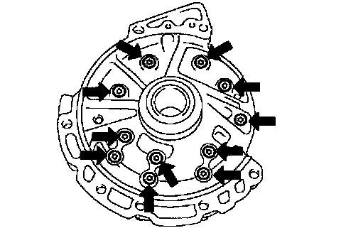 Using a torx socket T30, remove the 11 bolts and stator shaft.