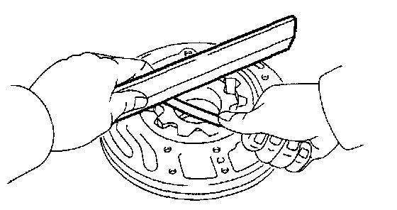 Using a steel straight edge and feeler gauge, measure the side clearance of both gears.