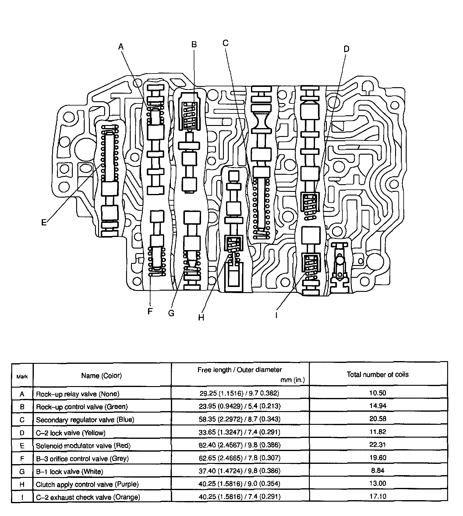 During reassembly please refer to the spring specifications to help you to discriminate between the different springs.