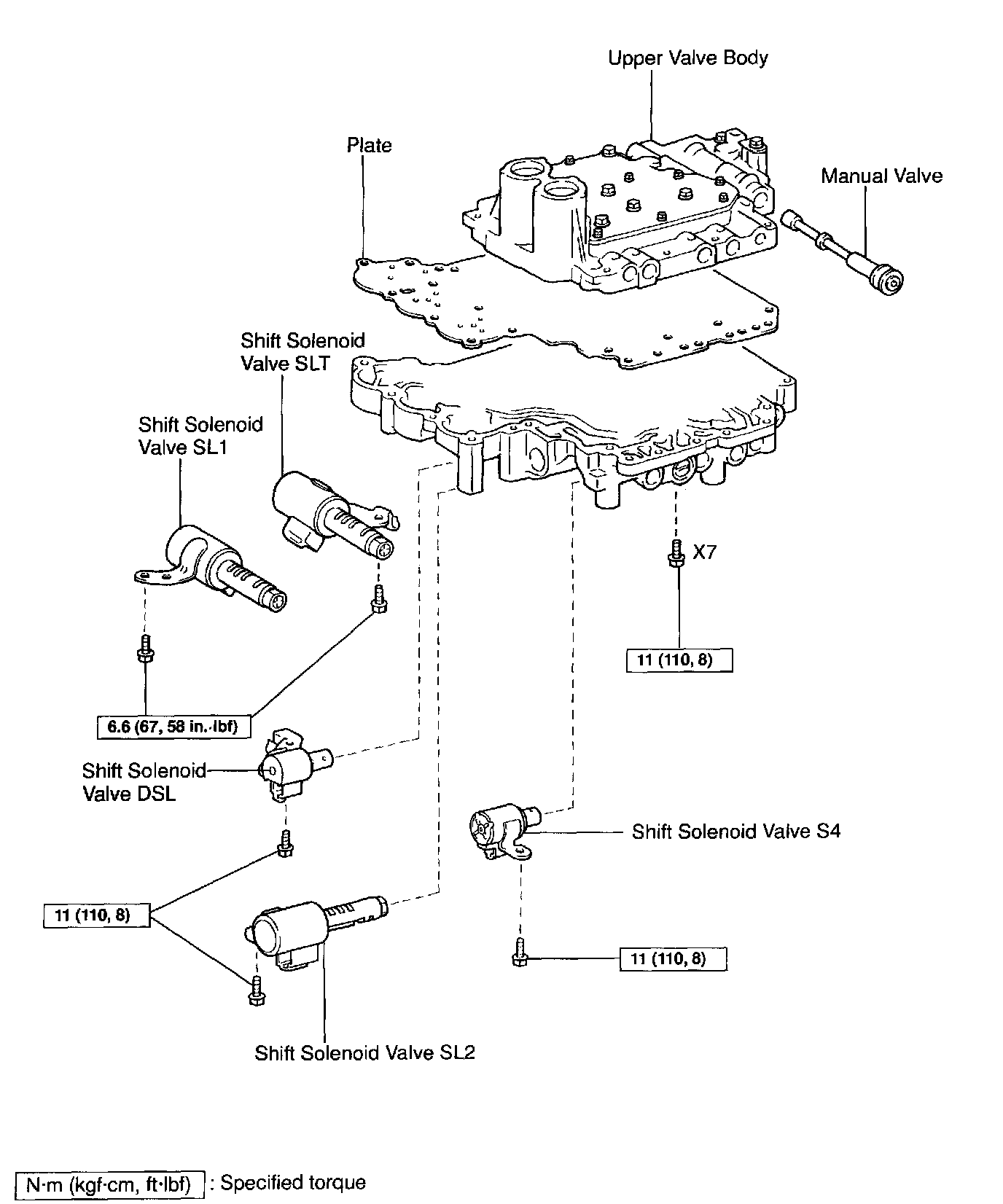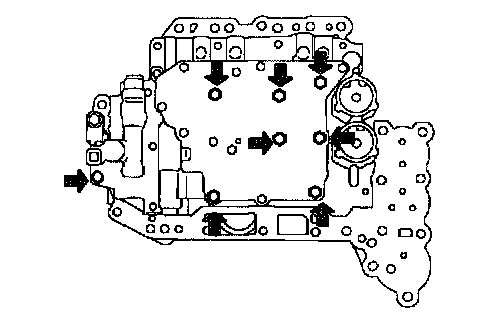 d. Install the 7 bolts to the lower valve body.