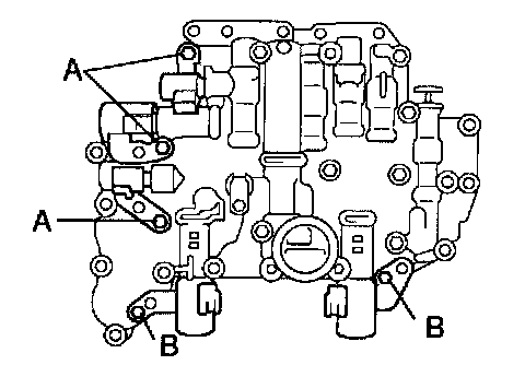 Install the 5 shift solenoid valves with 5 bolts.