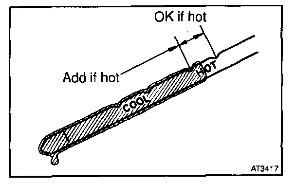 - Only use the COOL range on the dipstick as a rough reference when the fluid is replaced or the engine does not run.