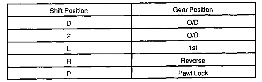 While driving, shift through the L, 2 and D positions. Check that the gear change corresponds to the shift position.