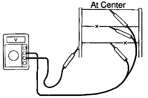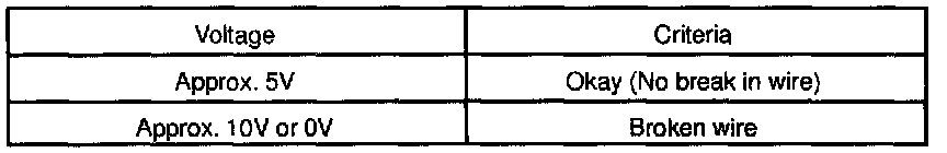HINT: If the heat wire is not broken, the voltmeter indicates 0 V at the positive (+) end of the heat wire but gradually increases to about 12 V as the meter probe moves to the other end.