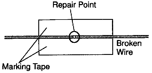 HINT: If there is approximately 10 V, the wire is broken between the center of the wire and the positive (+) end. If there is no voltage, the wire is broken between the center of the wire and ground.