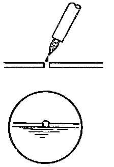 d. Using a fine tip brush, apply a small amount of the agent to the wire.