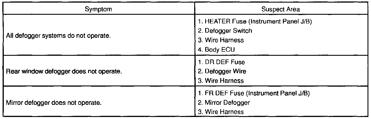 The table will be useful for you in troubleshooting these electrical problems. The most likely caution of the malfunction are shown in the order of their probability. Inspect each part in the order shown and replace the pant when it is found to be faulty.