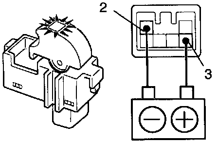 Connect the positive (+) lead from the battery to terminal 3 and the negative (-) lead to terminal 2, and check that the indicator light lights up.