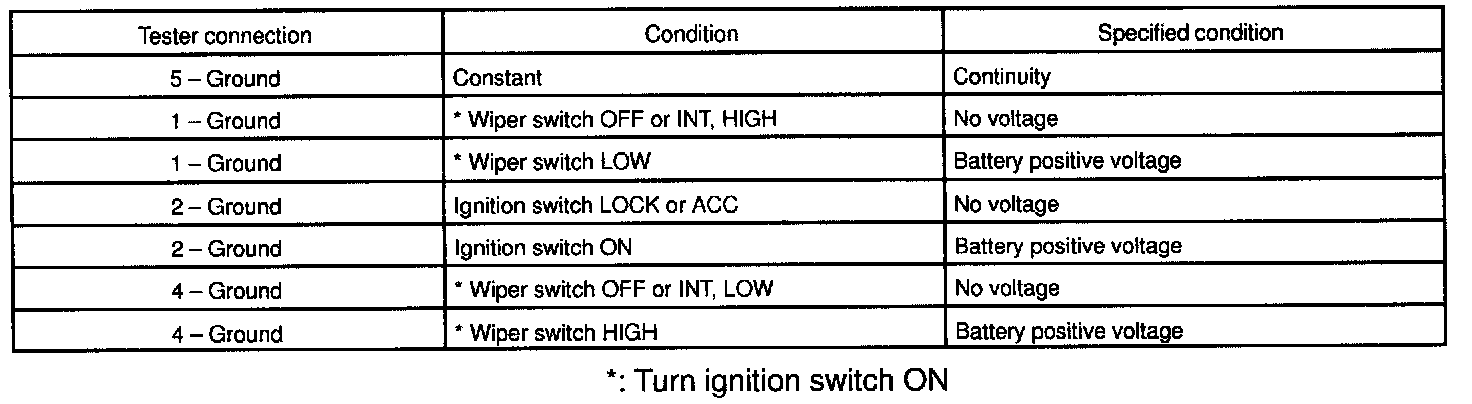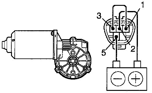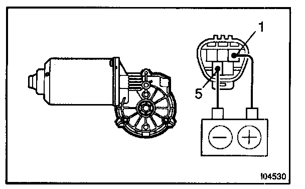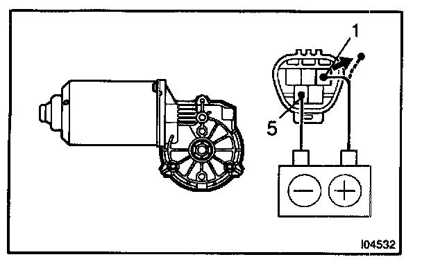 Connect the positive (+) lead from the battery to terminal 1 and the negative (-) lead to terminal 5, check that the motor operates at low speed.