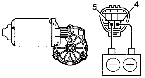 Connect the positive (+) lead from the battery to terminal 4 and the negative (-) lead to terminal 5, check that the motor operates at high speed.