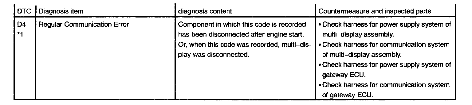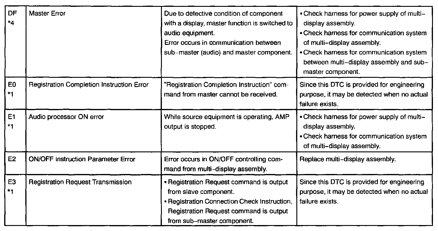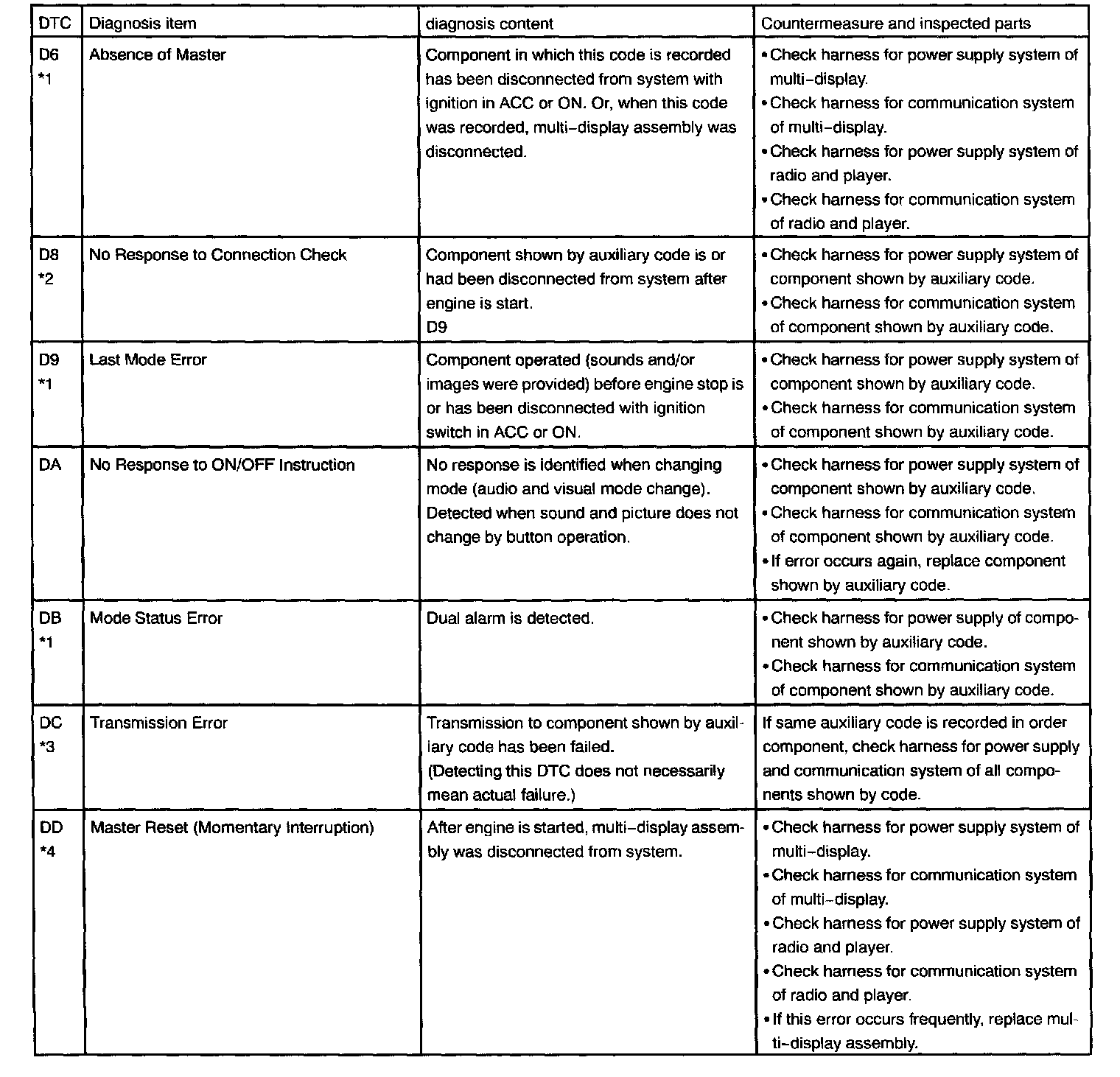 - *4: When 210 sec. has passed after pulling out the power supply connector of the master component with the ignition switch in ACC or ON, this code is stored.