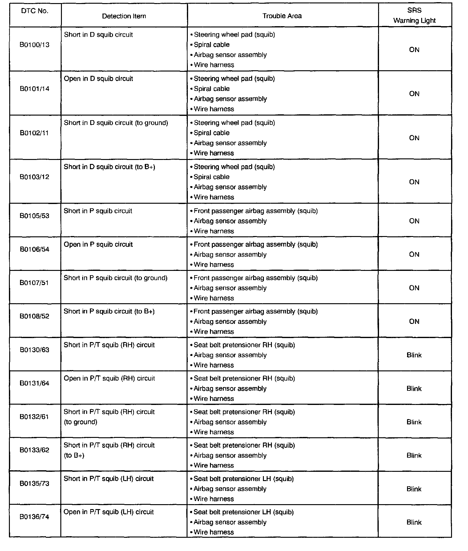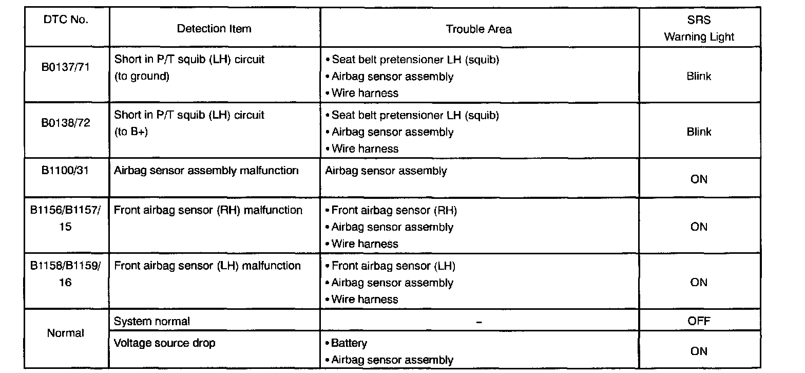 - When the SRS warning light remains lit up and the DTC is the normal code, this means a voltage source drops.