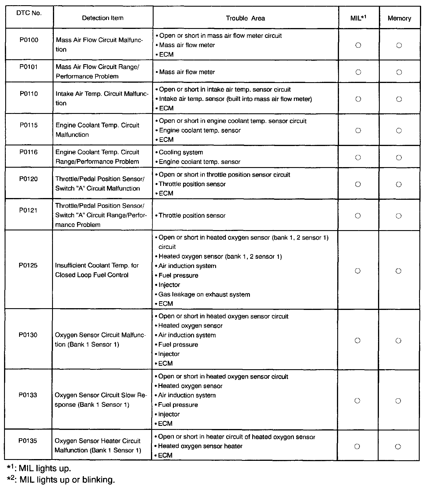 P0100 - P0135: