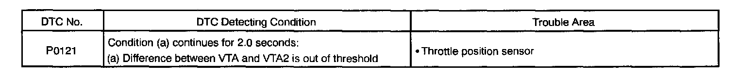 P0121 - Throttle/Pedal Position Sensor/Switch "A" Circuit Range/Performance ProblemDTC Detecting Condition: