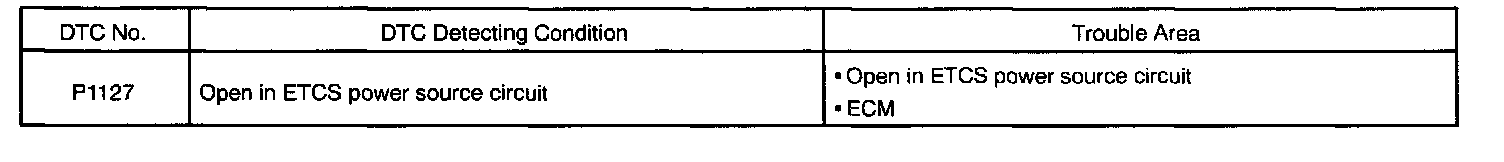P1127 - ETCS Actuator Power Source Circuit MalfunctionDTC Detecting Condition:
