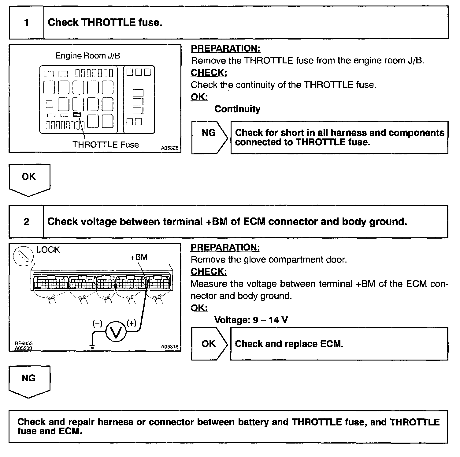 Battery positive voltage is supplied to terminal +BM of the ECM even once when the ignition switch is OFF for the electric throttle control system.