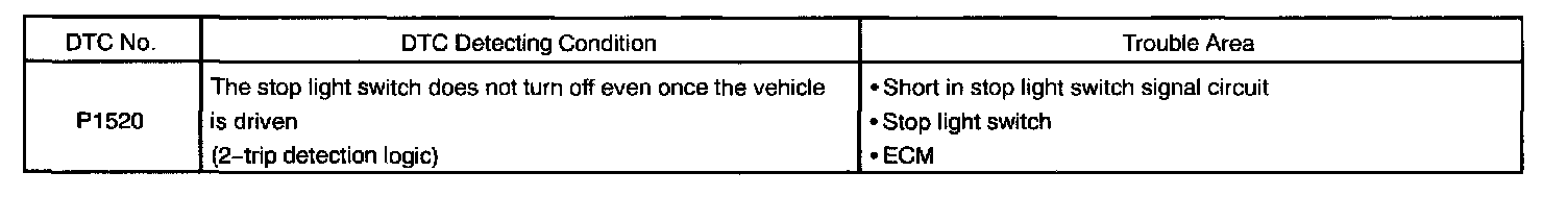 P1520 - Stop Light Switch Signal MalfunctionDTC Detecting Condition: