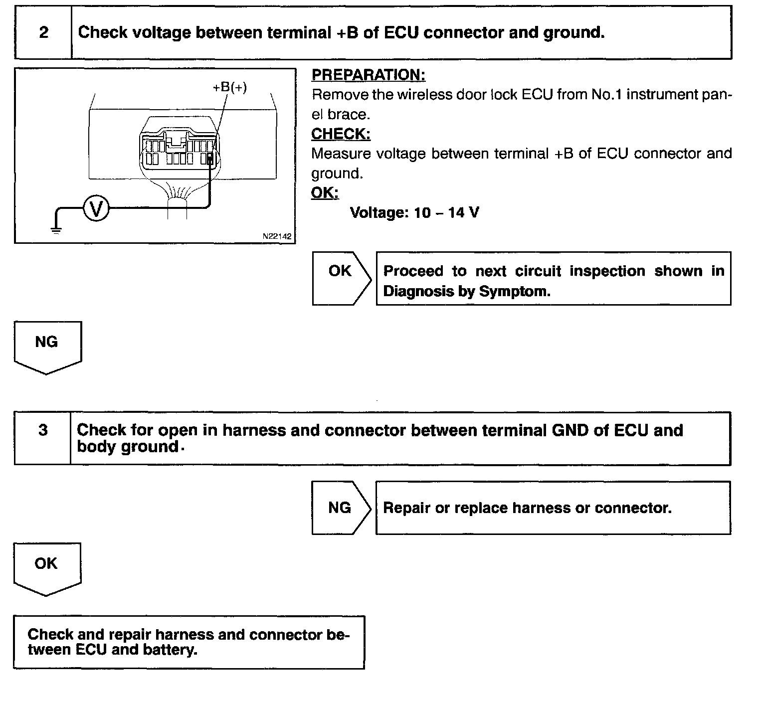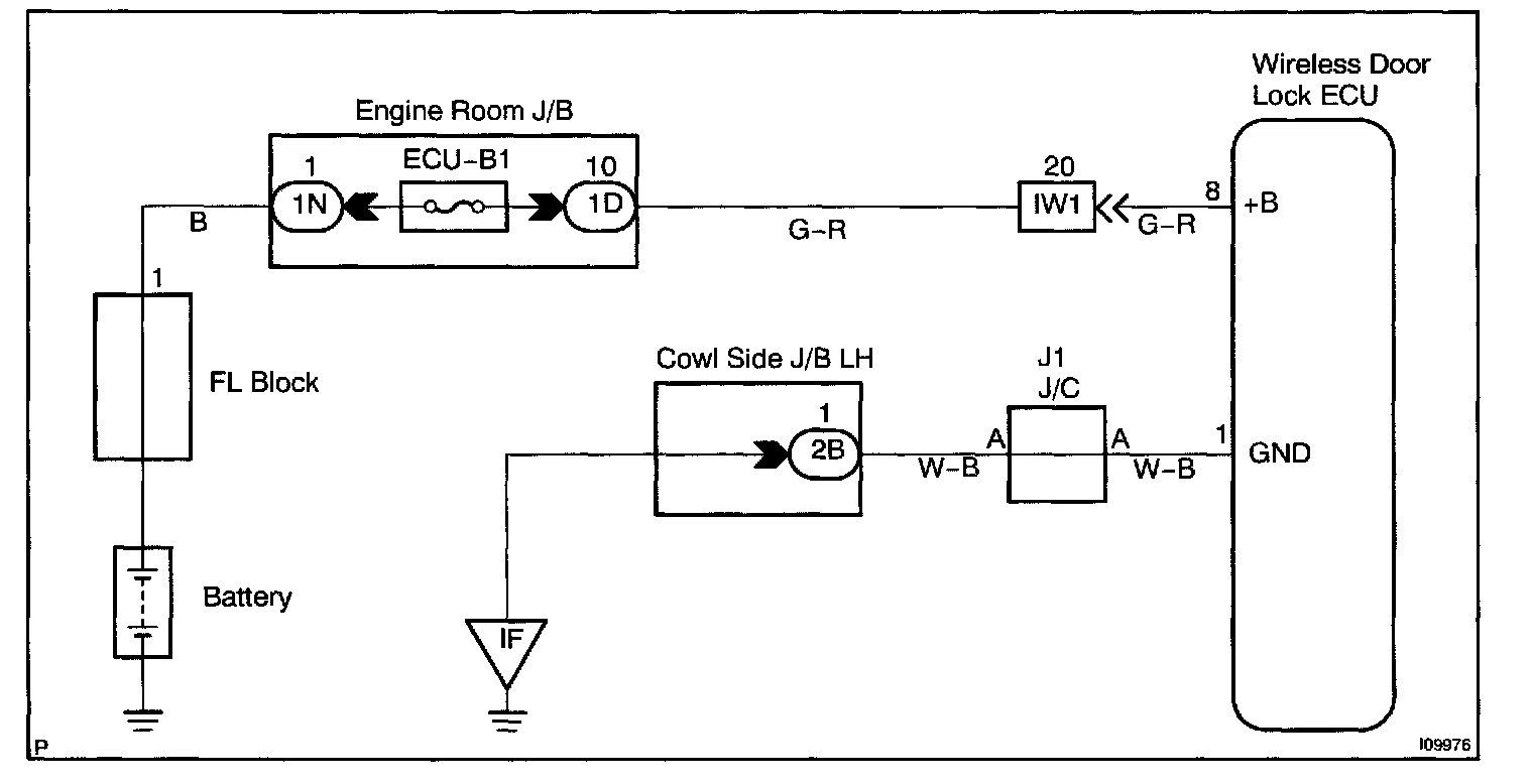 Battery positive voltage is always applied to the terminal +B of the wireless door lock ECU.