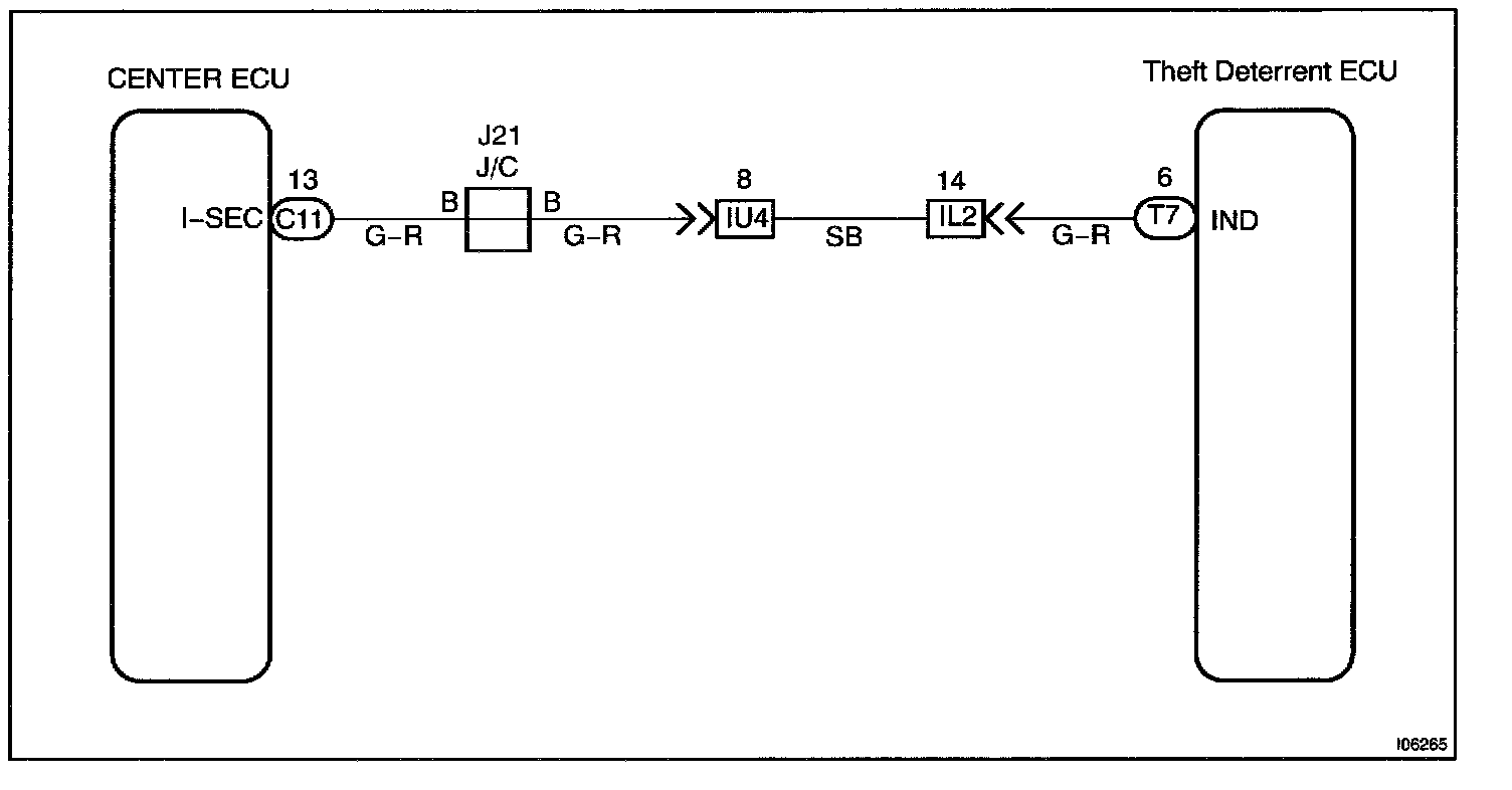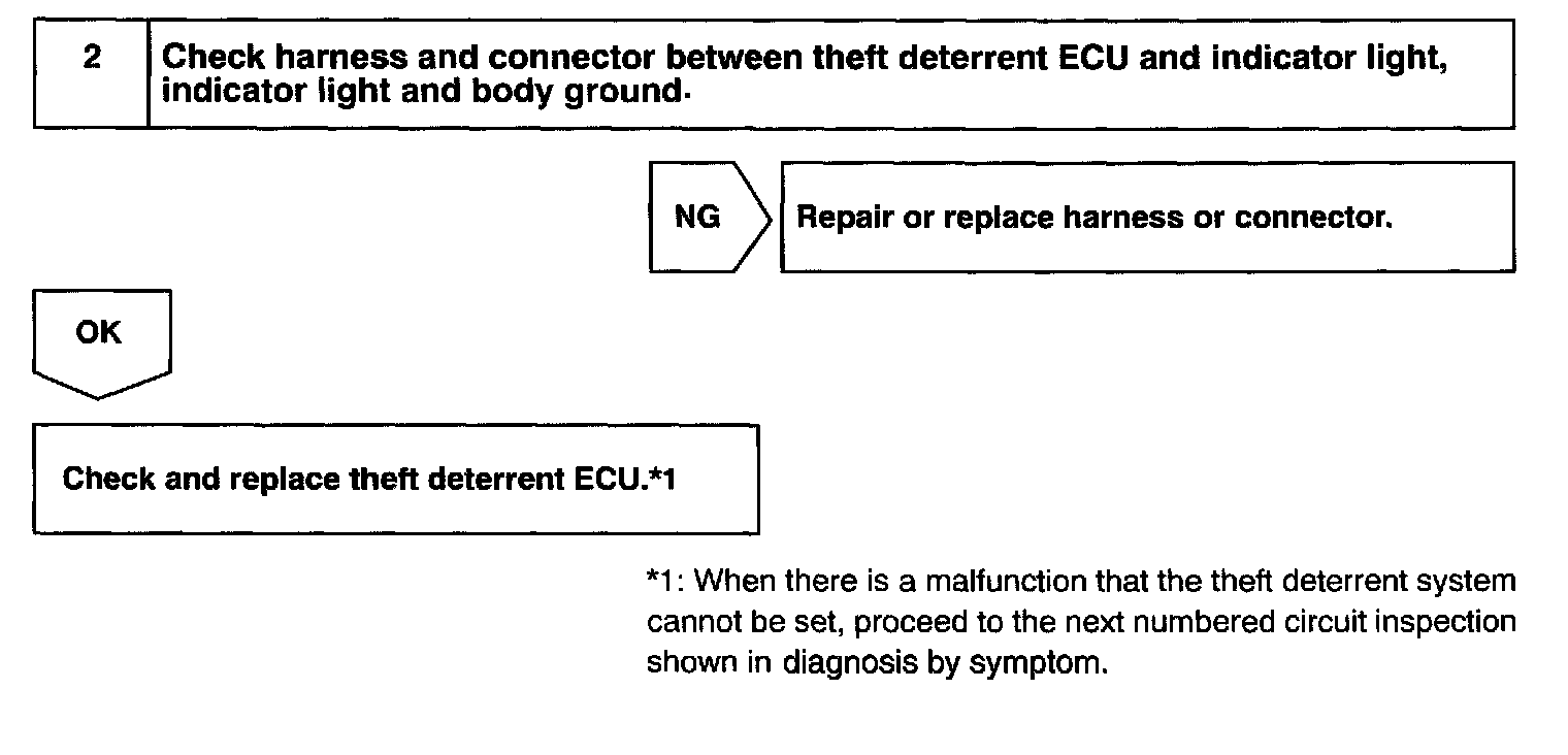 When the theft deterrent system is preparing to set, this circuit lights up the indicator light When the system has been set, it continually turns the indicator light ON for 1 second and turns it OFF for 1 second, thus blinking the indicator light.