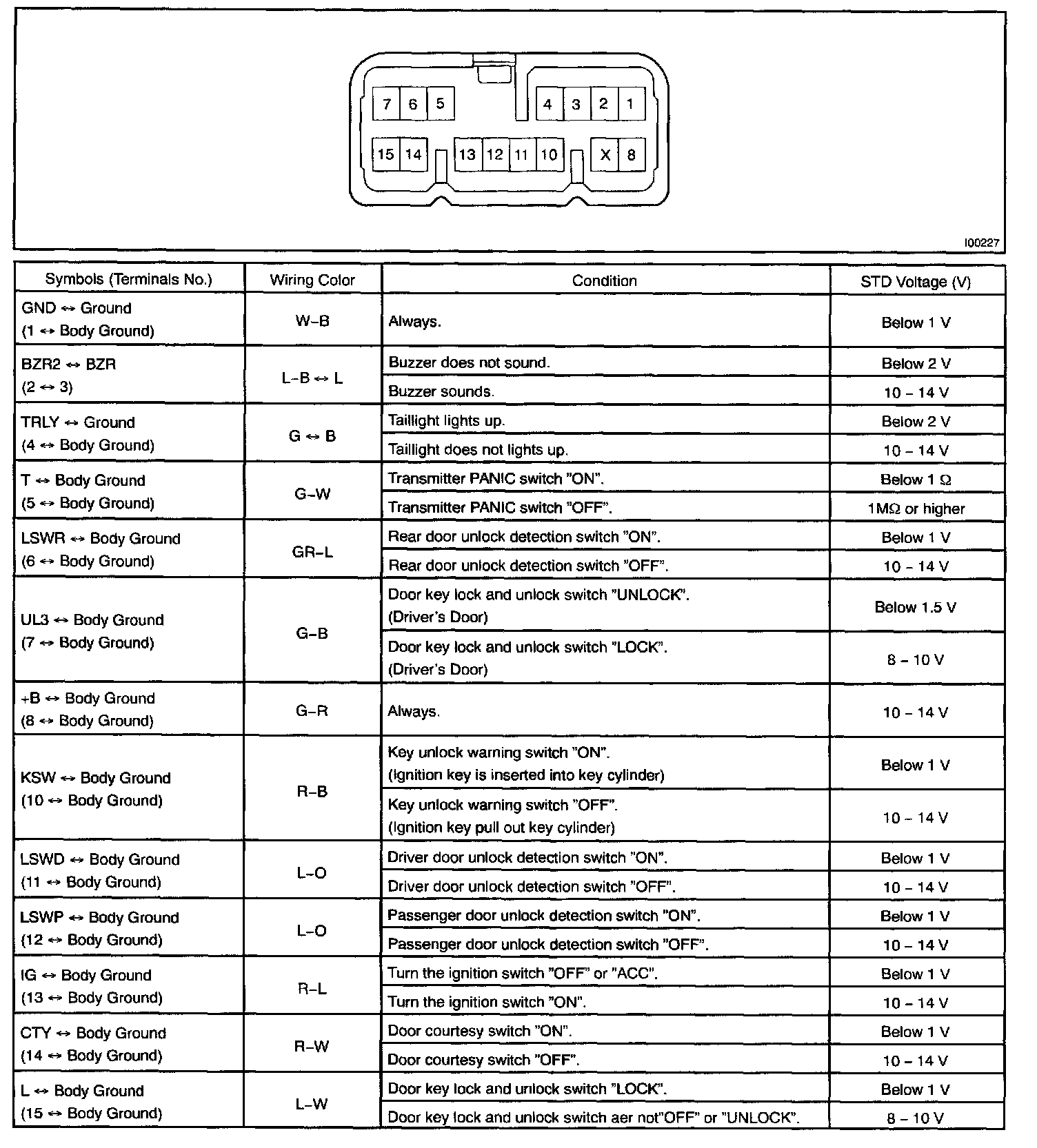 Pinout Values and Diagnostic Parameters