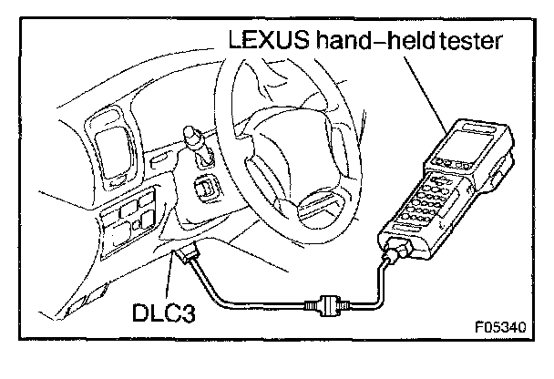 HINT: If your display shows "UNABLE TO CONNECT TO VEHICLE" when you have connected the cable of LEXUS hand-held tester to DLC3, turned the ignition switch ON and operated the LEXUS hand-held tester, there is a problem on the vehicle side or tester side.