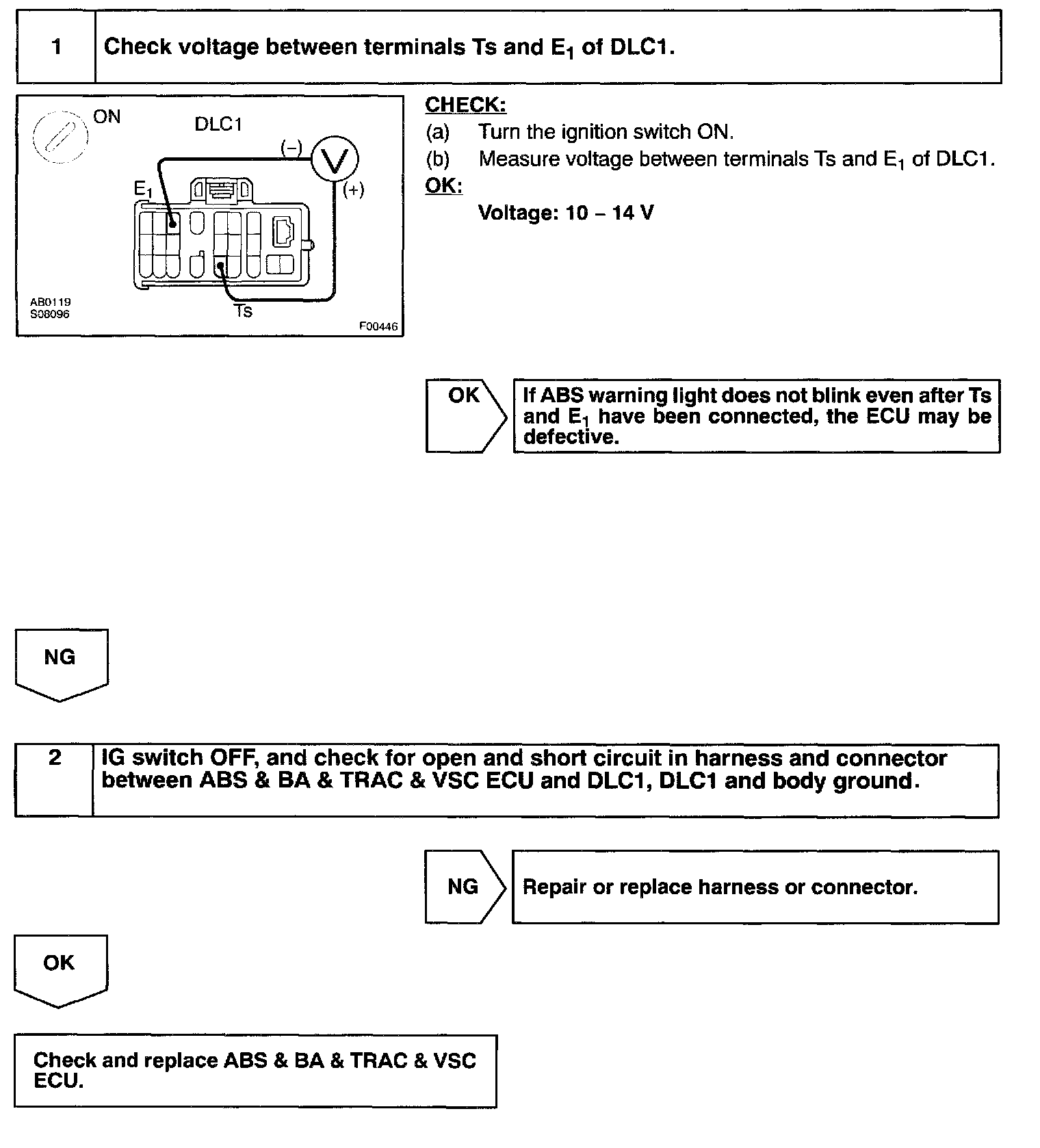 Connecting terminals Ts and E1 of the DLC1 starts the check.