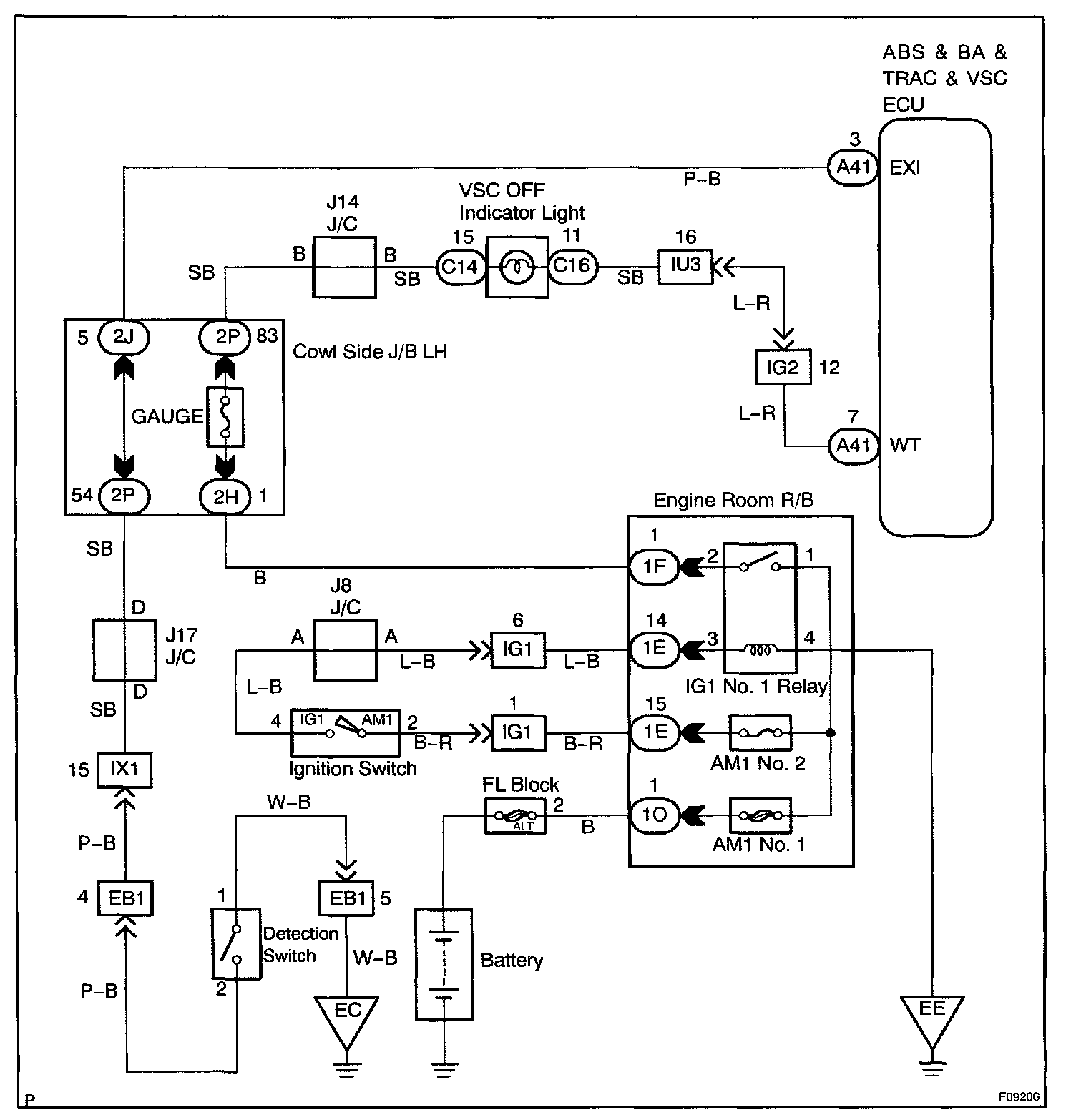 VSC Off Indicator Light/Center Differential Lock Switch Circuit