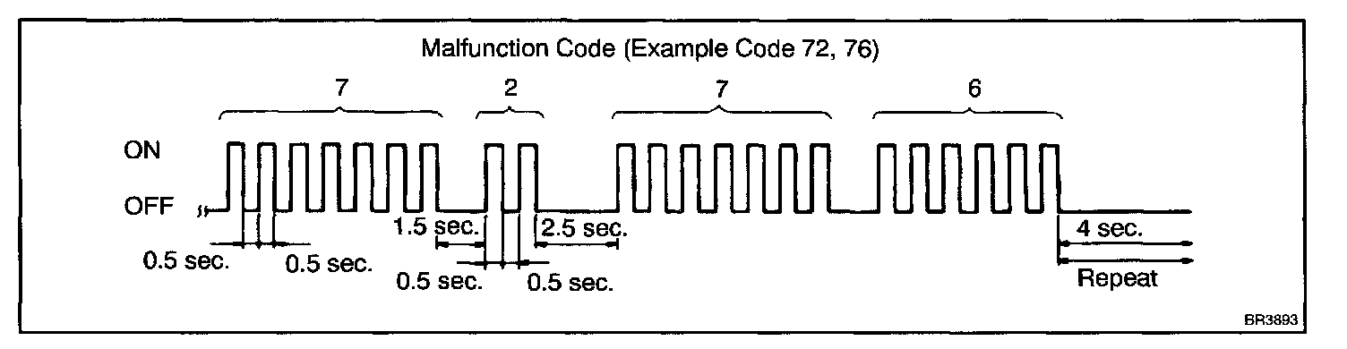 If every sensor is normal, a normal code is output (A cycle of 0.25 sec. ON and 0.25 sec. OFF is repeated).