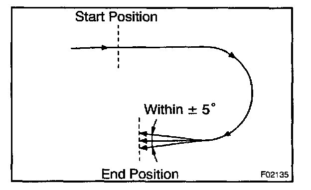 Shift the shift lever to the D position and drive the vehicle at the vehicle speed of approx. 5 km/h (3 mph), turn the steering wheel either to left or right for 90 ° or more, and maintain 180 ° circular drive for the vehicle.