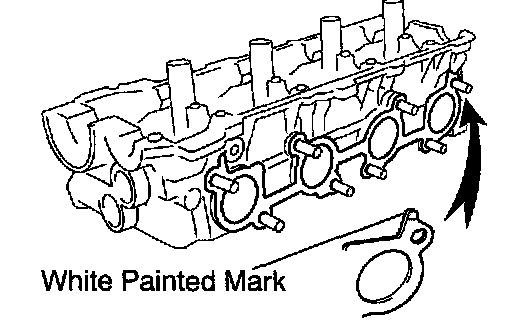 a. Place a new gasket on the cylinder head with the white painted marks facing the manifold side.