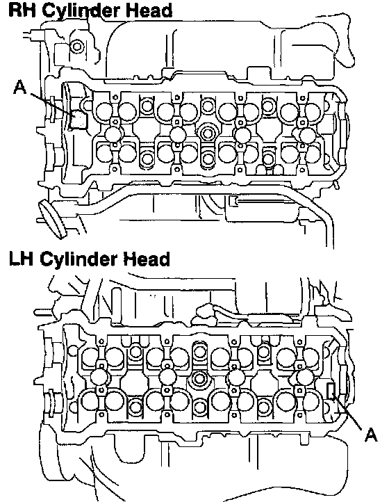 HINT: On the rear side of the cylinder head gasket are marks to distinguish the LH and RH banks, a "R" mark for the RH bank and a "L" mark for the LH bank.