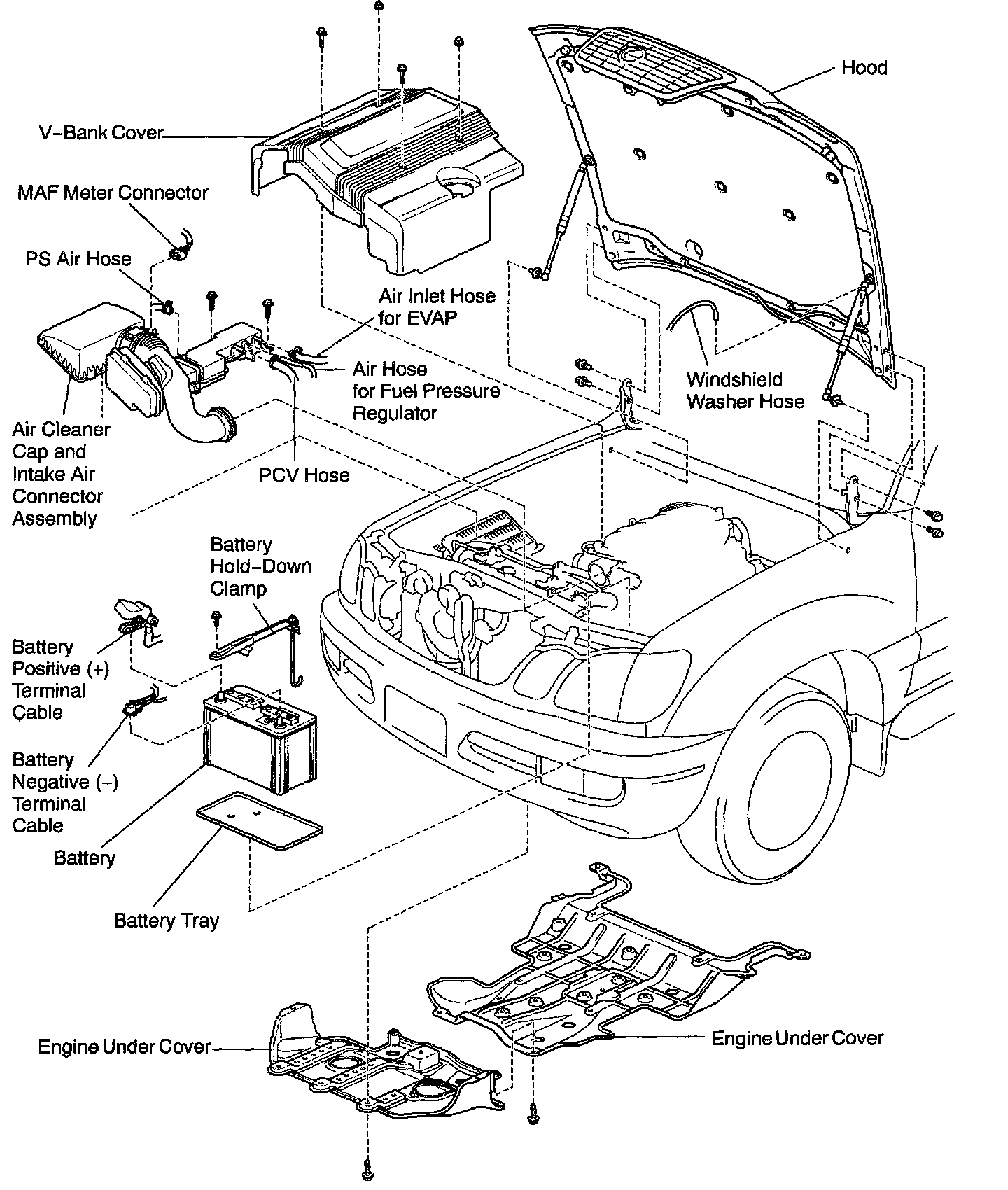 - 2 PS air hoses from hose clamp on No.3 RH timing belt cover