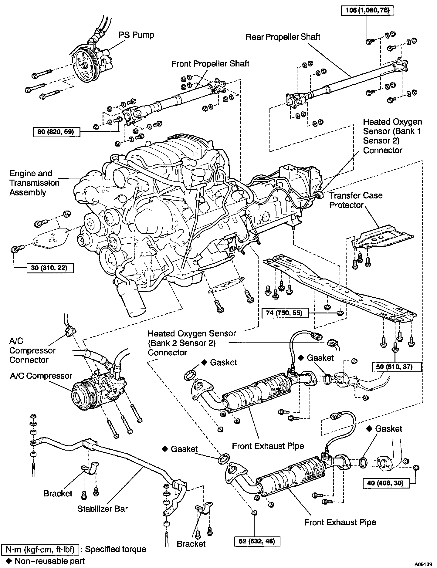 74 Nm (750 kgf-cm, 55 ft. lbs.) for nuts
