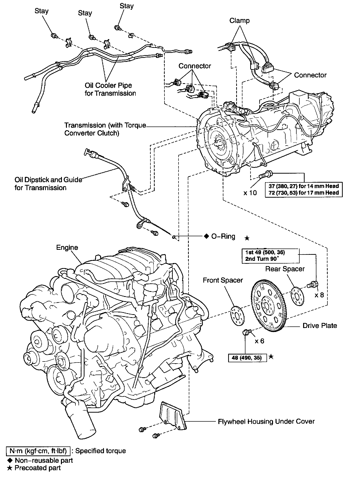 50 Nm (510 kgf-cm, 37 ft. lbs.) for bolts